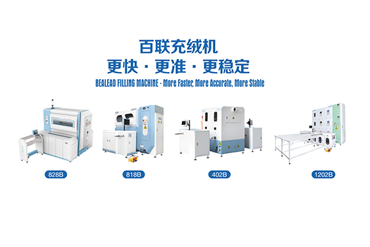 百聯(lián)展品:828B第四代充絨機、全自動裁片編號機、全自動發(fā)貨包裝機、百聯(lián)羽絨、百聯(lián)軟件