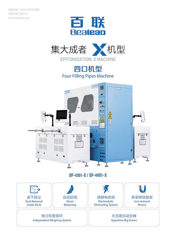 百聯展品:X型模塊化自動充絨機(2401X加封口機)