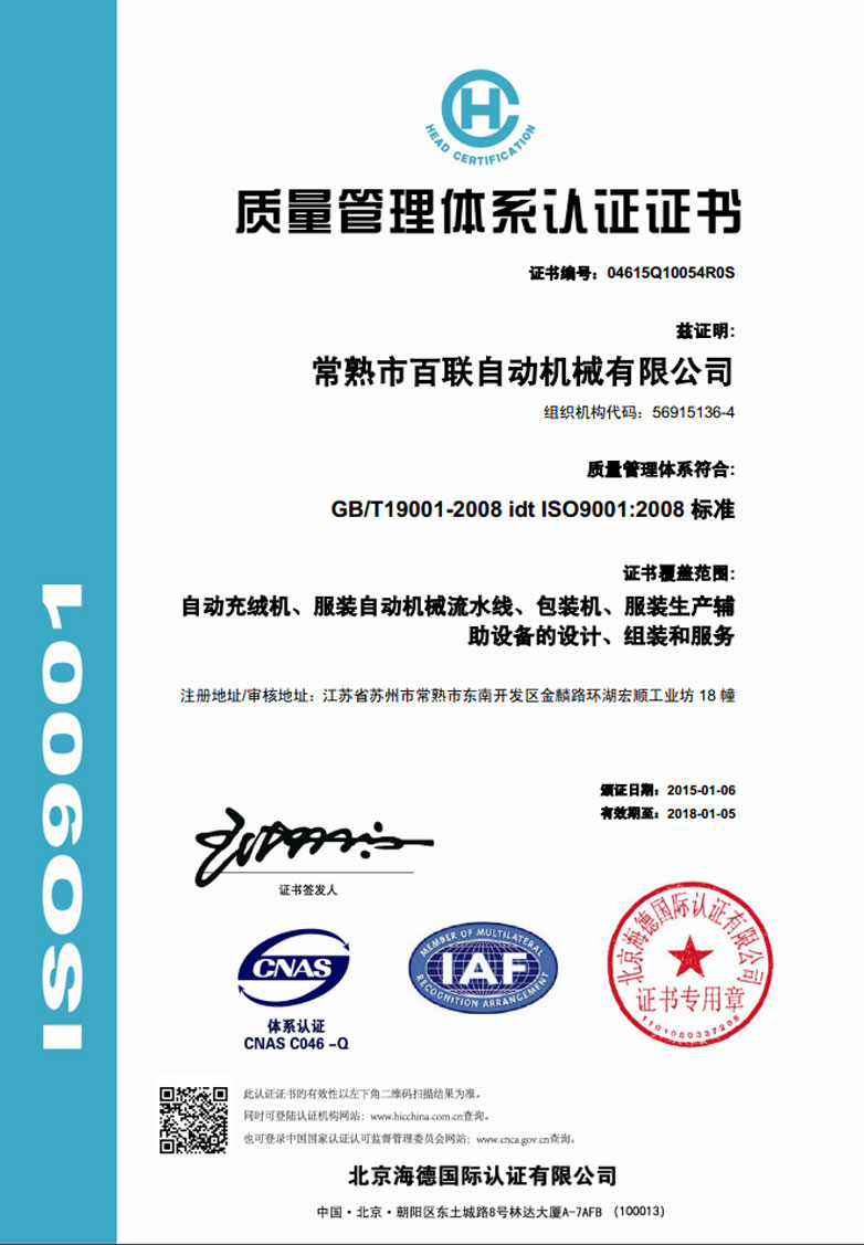 目前,公司已通過(guò)ISO9001:2008質(zhì)量管理體系。