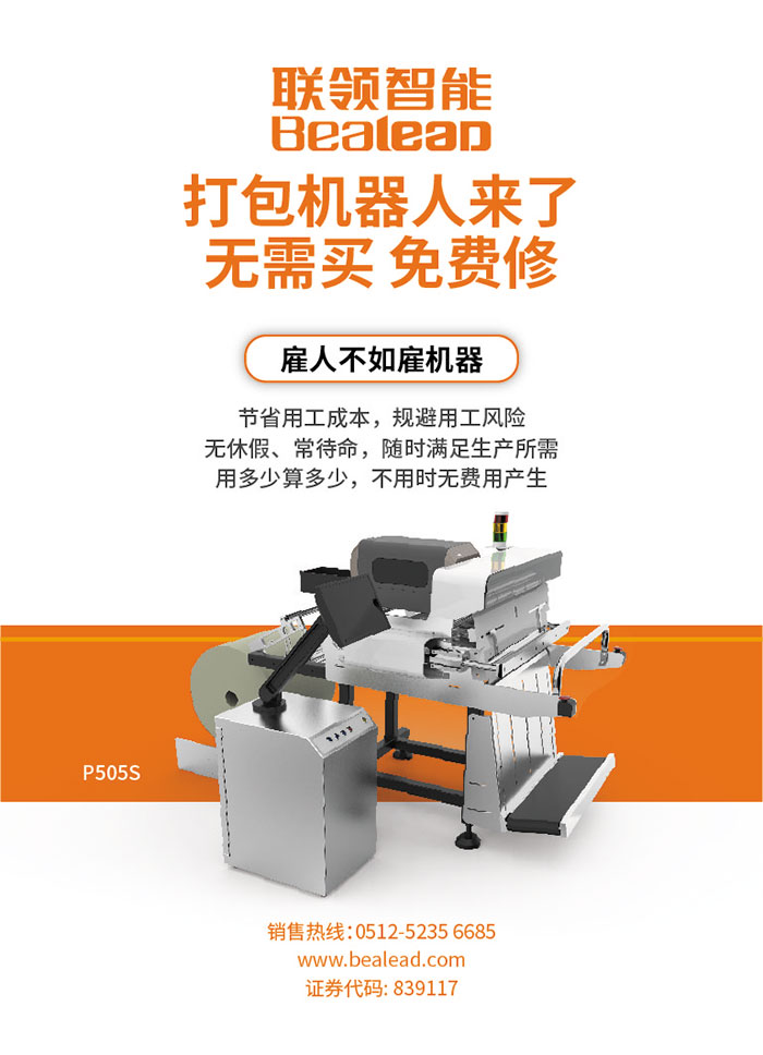 百聯還將展示全新的P505S型發包機,它不僅具有智能打印、高效省工、優質體驗、節能環保功能,還在商業模式上有所創新——用戶無需購買即可享有“打包機器人”的使用權。