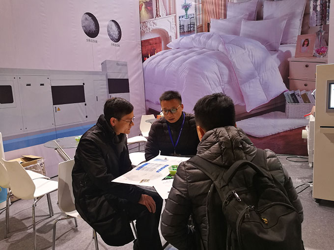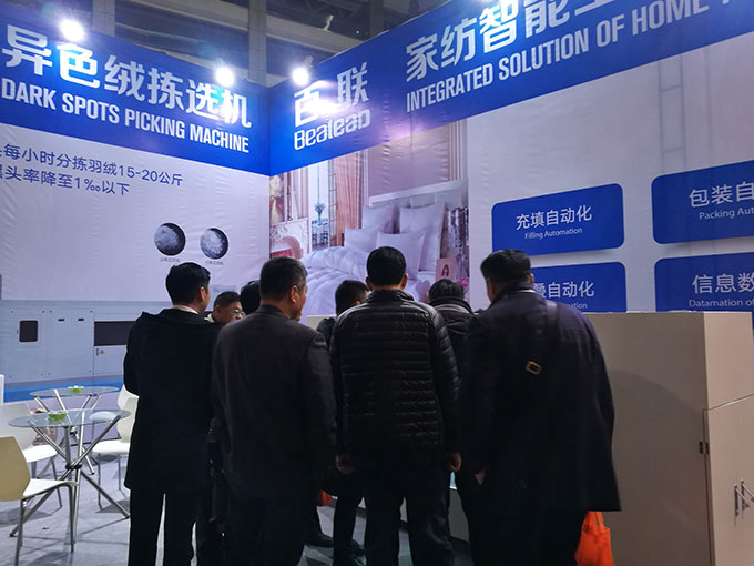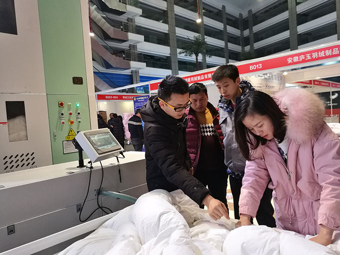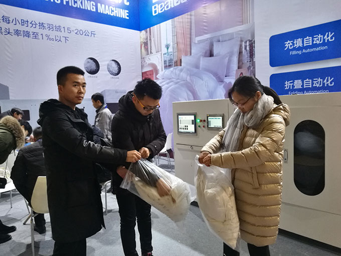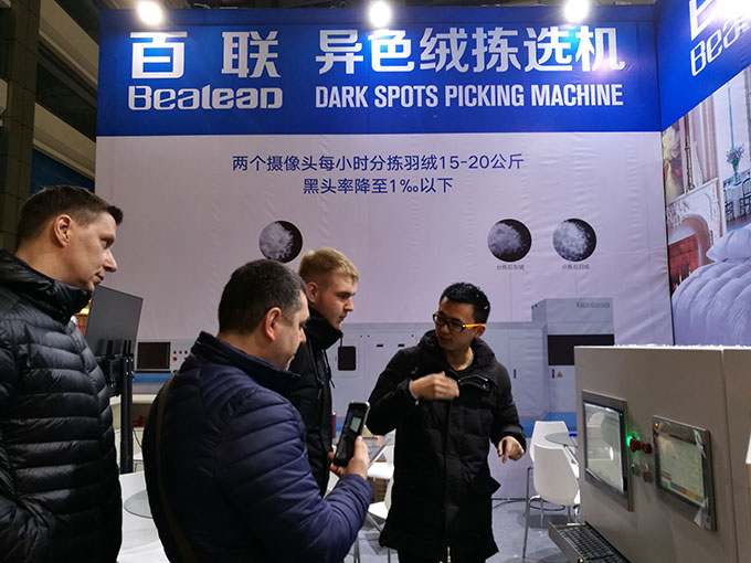本屆羽博會期間,百聯側重對異色絨揀選機、1202羽絨被充絨機等產品的性能優點進行現場演示,專業觀眾可自帶樣品試機,現場“檢驗”效果。