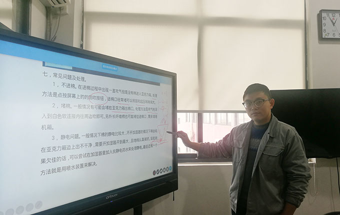 針對402D通用機型常用氣動元件功能原理及維護維修技巧、一體化機型的結構原理及客戶處安裝調試、稱重原理及模塊調試、PIC原理到軟件常用參數等知識,培訓老師做了深入而細致的講解,學員們都學得十分認真。