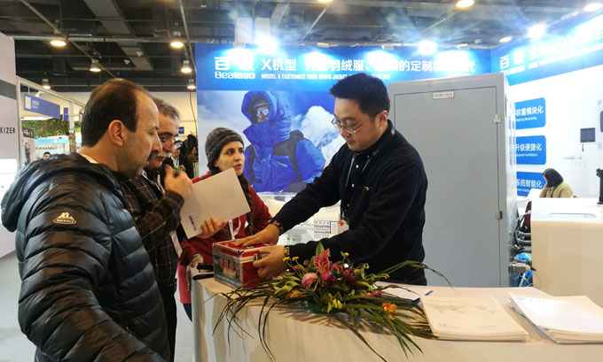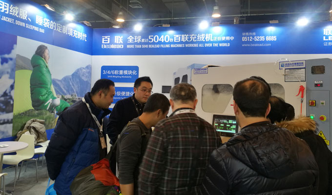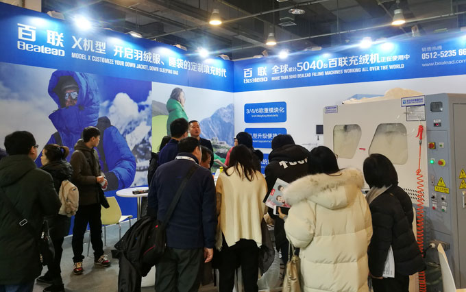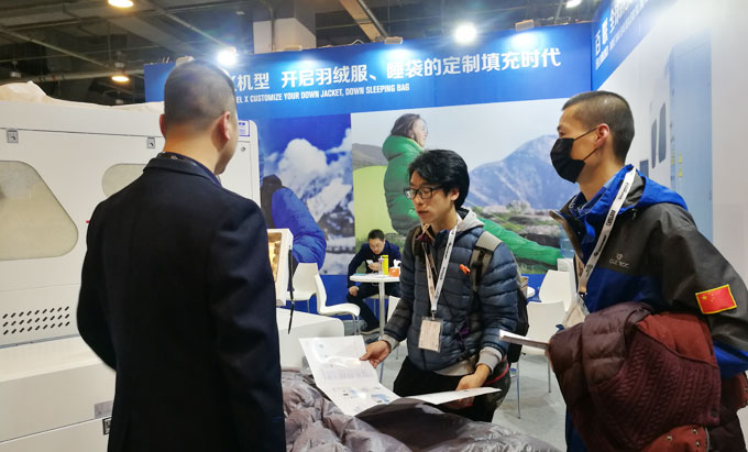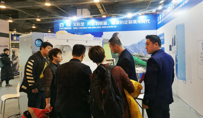 在ISPOBeijing 2018期間,百聯(lián)首次以參展商的身份亮相,展出了可滿足“羽絨服+睡袋”一體化生產(chǎn)需求的X模塊化定制機(jī)型,即在一臺(tái)機(jī)器上實(shí)現(xiàn)了羽絨服、睡袋兩種產(chǎn)品材料的同時(shí)填充,大幅提高了填充效率以及充絨機(jī)的應(yīng)用價(jià)值,得到了現(xiàn)場專業(yè)觀眾的好評(píng)。