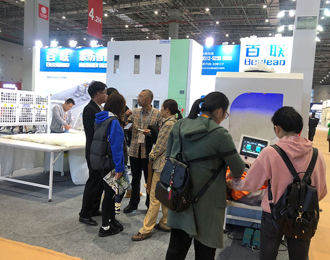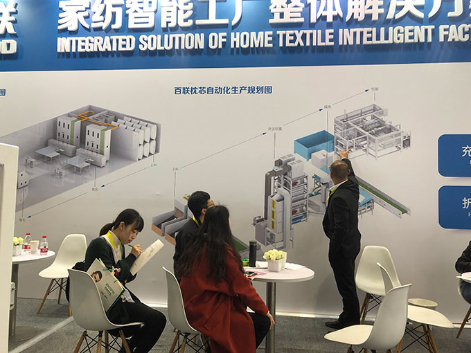 緊跟行業發展趨勢,百聯在本屆家紡展期間重點展示了 “家紡系列定制產品”,以豐富的、可定制化的家紡自動化解決方案滿足家紡企業個性化、多樣化的生產需求。該“定制化”的家紡系列產品,以被子類、枕芯類、配套類三大產品系列中的1202B羽絨被充絨機、102B商超羽絨被充絨機、F2215全自動折疊機、TF-1206羽絨枕芯機、TF-1208全自動棉枕芯機以及枕芯壓縮包裝機、全自動上料機、全自動刷毛機等基礎,根據用戶的工藝要求,進行個性化的開發與設計。